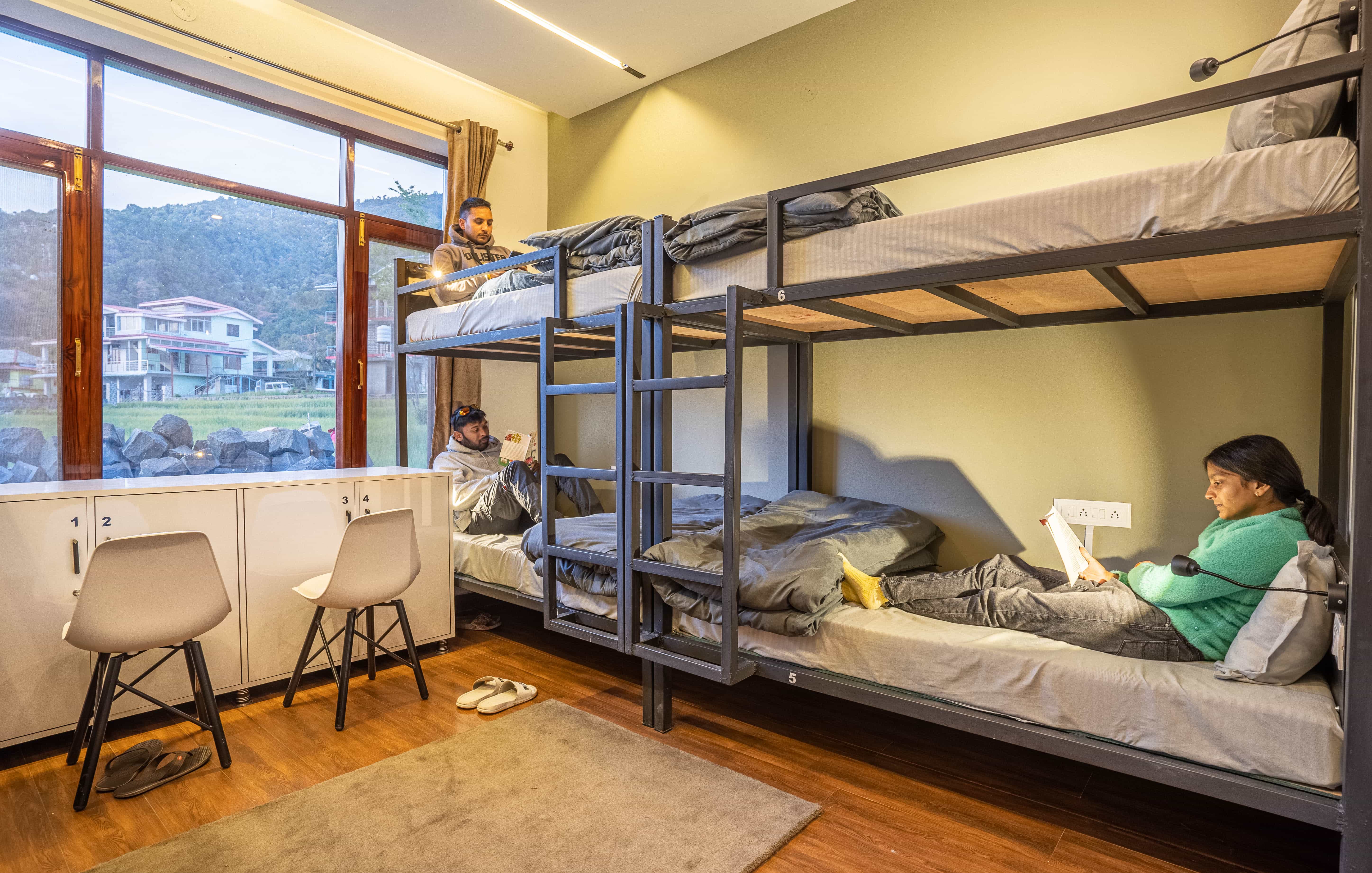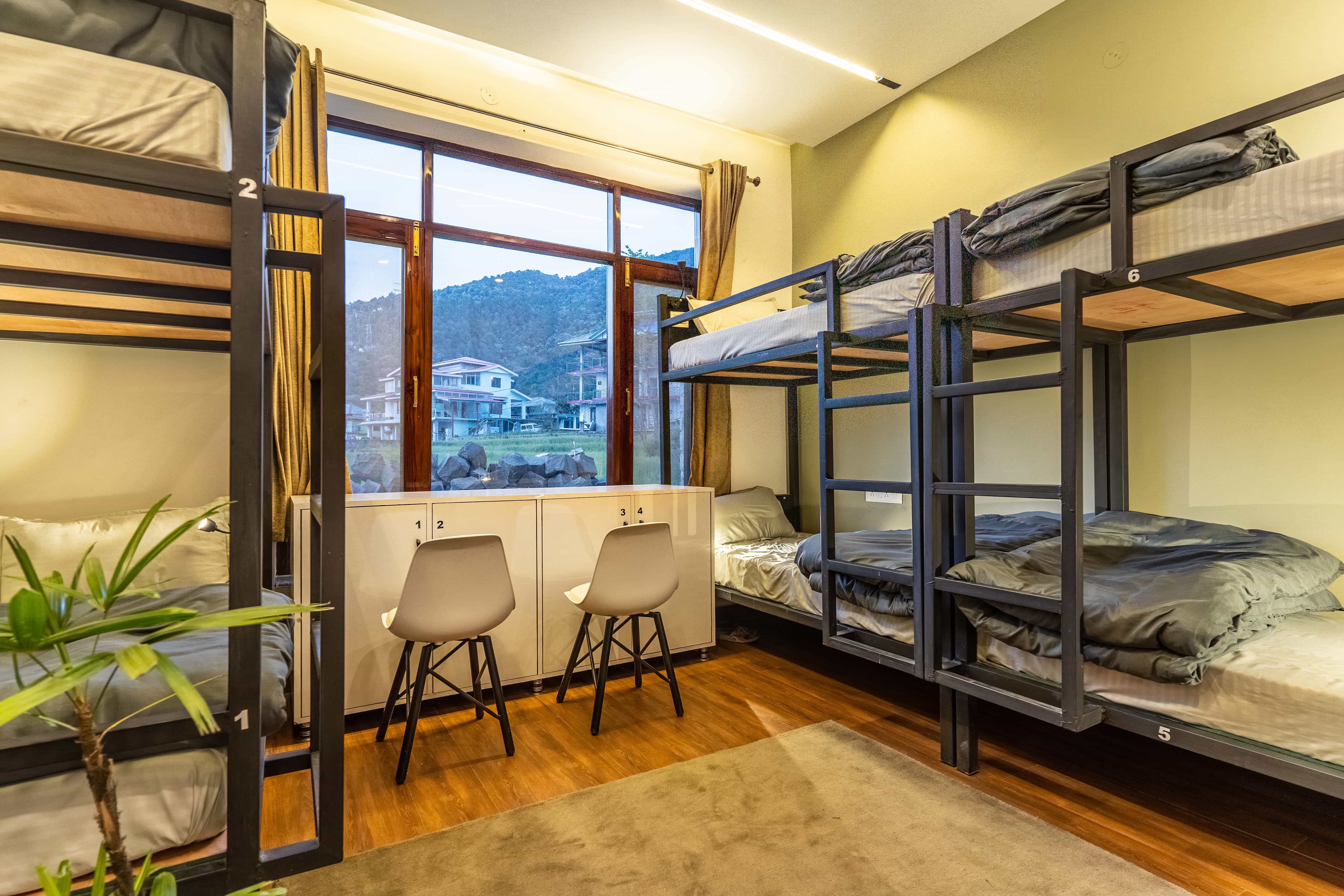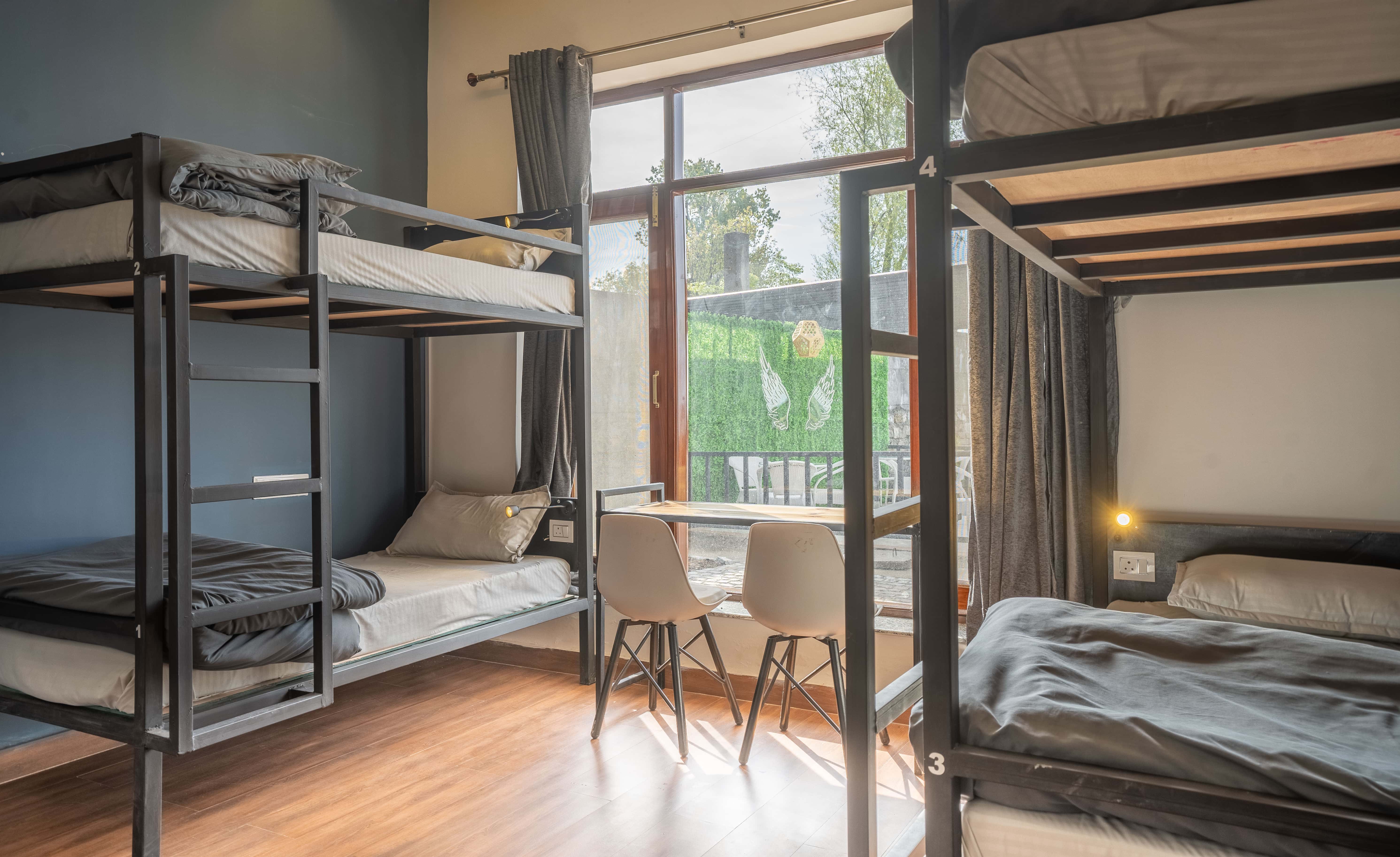 We have spacious and beautifully designed dorm rooms for mixed as well as solo female travellers. The area is bigger than most dorm rooms and it also comes with a bed side light to make your midnight reading experience more enriching.